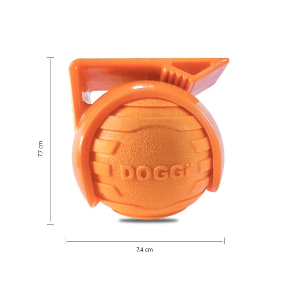 The Doggi Catch & Carry Ball n Clip is made from tough thermpolastic rubber (TPR). Super durable with great tear and abrasion resistance it features a handy holder that can be firmly clipped to your belt or waist band to carry their favourite ball hands-free until it’s time to play. Designed to naturally appeal to a dog’s innate need to forage and chew, it features a grooved surface to promote dental health, and a hole to dispense their favourite treats.