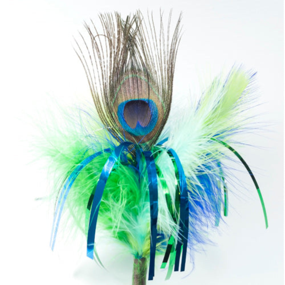 Perfect for all-day fun, the Peacock Sparkler Cat Teaser Wand features a variety of marabou feathers and an authentic peacock feather that encourage your feline friend’s hunting instincts and keep them entertained and active. With the extra sparkler strands, this tickler toy for cats has multiple stimulating elements to keep your cat’s attention. The long, sturdy wand makes it easier to play with your cat and control the movement of the wand.