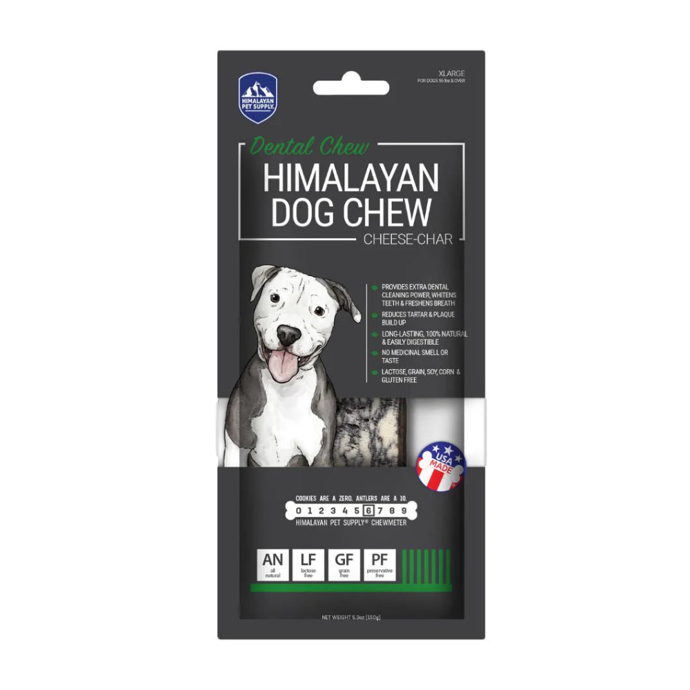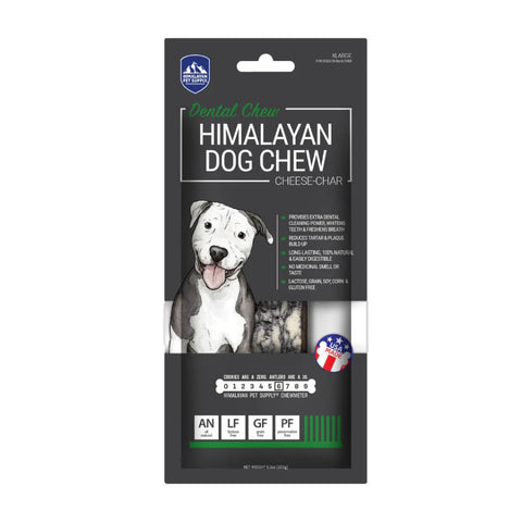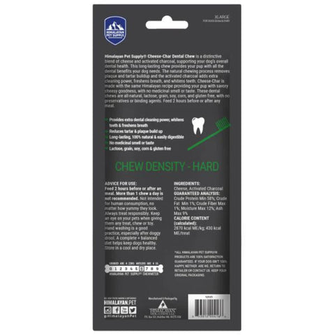Himalayan Dog Chew Cheese-Char is a distinctive blend of cheese and activated charcoal, supporting your dog’s overall dental health. This long-lasting chew provides your pup with all the dental benefits your dog needs. The natural chewing process removes plaque and tartar buildup, and the activated charcoal adds an extra layer of cleaning power, freshens breath, and whitens teeth. Cheese-Char is made with the same Himalayan Cheese recipe, providing your pup with a savoury, cheesy experience. With no medicinal smell or taste, these dental chews are all-natural, lactose, grain, soy, corn, and gluten-free, with no preservatives or binding agents.
