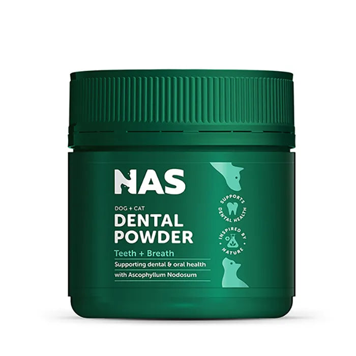 With no artificial additives or harsh chemicals, NAS Dental Powder is the gentle and effective way to maintain your pet’s oral health – because every pet deserves a healthy, happy smile!